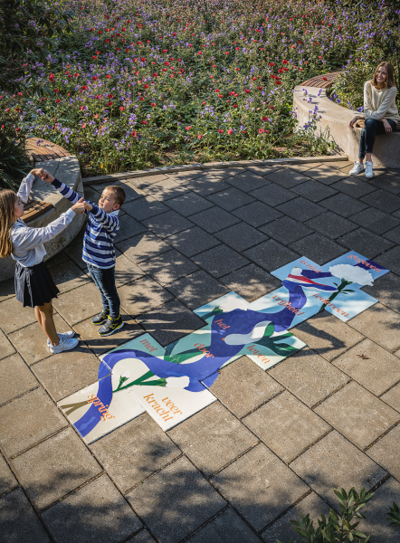 For the Dutch Veteran Institute, we developed Jump! – an interactive hopscotch campaign in public spaces. The playful hopscotch lanes, with eye-catching designs and short poetic texts, invite people to jump, move, and join in.
